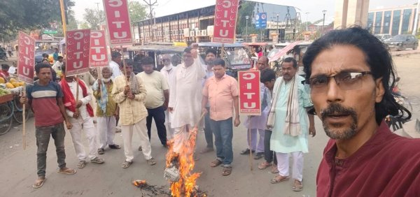 सहरसा : भारतीय ट्रेड यूनियन केन्द्र (सीटू) द्वारा आज शारदा नगर बटराहा स्थित सीटू कार्यालय से मजदूरों का मार्च निकाला गया और चांदनी चौक पर पुतला दहन करते सभा की गई।इस अवसर पर बोलते हुए किसान सभा के प्रांतीय संयुक्त सचिव रणधीर यादव ने बताया कि पूरे दिल्ली एन सी आर में केंद्र सरकार और उसकी हरियाणा तथा उत्तर प्रदेश की डबल इंजन की सरकार द्वारा लगातार मजदूरों पर हमले हो रहे हैं। उनके घरों पर छापे पड़ रहे हैं। परिवार के लोगों को डराने धमकाने का काम हो रहे हैं और किसी भी तरीके से आंदोलन में मजदूर शामिल नहीं हो।उनके जनतांत्रिक अधिकारों को छीनने का काम किये जा रहे हैं। जब नोएडा और गुड़गांव में वाजिब मजदूरी के सवाल पर मजदूरों का बड़े पैमाने पर स्वत:स्फूर्त आंदोलन हुए।तो औद्योगिक घरानों के कानो तक आवाज गई कि अब मजदूर 26 हजार रुपए प्रति माह न्यूनतम मजदूरी की मांग कर रहे हैं। 8 घंटे काम के अधिकार के लिए संघर्ष पर उतारू है। इतना ही नहीं मजदूरों को मिलने वाले सभी सुविधाओं की मांग कर रहे हैं। इसके पहले सीटू ने कई बार अपने आंदोलन के माध्यम से इन मांगों को उठाया। लेकिन सरकार तथा प्रशासन के सहयोग से औद्योगिक घरानों ने मांगों को हमेशा ठुकराने का काम किया है । पूरे दिल्ली एनसीआर में मजदूरों के अंदर मजदूरी के सवाल पर इतने बड़े अंतर हैं ।जिसको ज्यादा दिनों तक बर्दाश्त नहीं किया जा सकता। जब दिल्ली में 18 हजार रुपए न्यूनतम मजदूरी है। तो नोएडा में 12 हजार और गुड़गांव में 13 हजार रुपए क्यों है। सरकारें मजदूरी की इस खाई को मिटाने का कार्य नहीं कर रही है। यही कारण है कि आज दिल्ली एनसीआर में मजदूरों की आवाज वर्ग संघर्ष के आधार पर दिखने लगी है। सीटू के जिला सचिव नसीमुद्दीन के ने बताया कि नोएडा जिला के सीटू के अध्यक्ष गंगेश्वर दत्त शर्मा ,जिला सचिव राम स्वार्थ तथा अन्य सीटू के नेताओं को हाउस अरेस्ट करके रखा गया है। पुलिस की संगीनों से मजदूरों के जायज मांगों को दबाने का काम किया जा रहा है।
