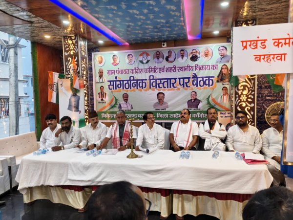 साहेबगंज : निशा मैरेज हॉल में सोमवार को कांग्रेस कार्यकर्ताओं की बैठक प्रखंड अध्यक्ष रंजीत टुडू की अध्यक्षता में हुई .जिसमें मुख्य अतिथि के रूप में प्रदेश प्रभारी के राजू, प्रदेश अध्यक्ष केशव महतो कमलेश,कांग्रेस विधायक दल उप नेता प्रदीप यादव,पूर्व केंद्रीय मंत्री सुबोध कांत सहाय, अल्पसंख्यक आयोग के उपाध्यक्ष शमशेर आलम एवं कांग्रेस प्रदेश महासचिव तनवीर आलम मौजूद रहे.इस दौरान कार्यकर्ताओं ने अतिथियों का स्वागत माला पहनाकर किया.उक्त बैठक में बरहरवा प्रखंड के पांच पंचायतों आहुतग्राम,महाराजपुर,हरिहरा, श्रीकुंड एवं बटाईल पंचायत कमेटी के कार्यकर्ताओं के साथ प्रखंड कमेटी,मंडल अध्यक्ष, नगर अध्यक्ष एवं वार्ड अध्यक्ष सहित सैकड़ों कार्यकर्ता शामिल हुए.