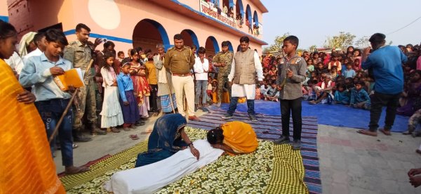 सहरसा : जिले के सलखुआ प्रखंड के पूर्वी कोशी तटबंध के अंदर फरकिया दियारा में चिड़ैयां संकुल समन्वयक सह प्रखंड अध्यक्ष बिहार राज्य प्रारंभिक शिक्षक संघ के सुदर्शन कुमार गौतम के नेतृत्व में नशा मुक्ति, नशवा नरक में लें जारी, दहेज प्रथा, बाल विवाह, आधी रोटी खाएंगे, फिर भी बेटे- बेटियों को पढ़ाएंगे, बेटी बचाओ, बेटी पढ़ाओ पर मध्य विद्यालय रैठी के छात्र-छात्राओं के द्वारा नुक्कड़ नाटक का आयोजन किया गया। सांहर पंचायत, अलानी पंचायत, कवीरा धाप पंचायत, चानन पंचायत के बसाही, सहुरिया, बनाही, कबीरा धाप, कांटी मुसहरी, रैठी, चिरैया, चिकनी टोला, खजुर बन्ना सभी टोला मोहल्ला में घूम-घूम कर मध्य विद्यालय रैठी के छात्र-छात्राओं के द्वारा नुक्कड़ नाटक के जरिए समाज की कुरीतियों को दूर करने का मुहिम चलाया गया, हर टोले- मोहल्ले में नुक्कड़ नाटक देखने के लिए बहुत ही भीड़ रहती थी जिसमें महिलाओं की संख्या बहुत ही थीं, नन्हे- मुन्ने बच्चों ने नुक्कड़ नाटक के जरिए अपनी प्रतिभा दिखाकर सभी ग्रामीण महिला- पुरुष का दिल जीत लिया, संकुल समन्वयक सह प्रखंड अध्यक्ष सुदर्शन गौतम ने वहां मौजूद बड़ी संख्या में ग्रामीण महिला- पुरुष, बुजुर्ग सभी को संबोधित करते हुए कहा कि नशा समाज के लिए बहुत बड़ा अभिशाप है, जो भी आदमी दारु, शराब, गांजा, खैनी, बीड़ी- सिगरेट, सुलेशन, ड्रग्स अन्य प्रकार के नशा का सेवन करते हैं उनका परिवार कभी भी खुशी नहीं रह सकता है , वह आदमी समाज और अपने परिवार के लिए बहुत बड़ा धातक है, जो नशा का हुआ शिकार, उजड़ा उसका घर परिवार , ठीक उसी तरह दहेज प्रथा और बाल विवाह भी समाज के लिए बहुत ही घातक साबित हो रहा है, इसलिए आप लोग बेटे की शादी आदर्श शादी करें, और दहेज मुक्त शादी करें, अपने बिटिया की शादी 18 वर्ष उम्र होने के बाद ही करें और बेटे की शादी 21 वर्ष उम्र होने के बाद ही करें अगर आप लोग बाल विवाह में शादी करते हैं तो यह कानूनी अपराध है, और शारीरिक दृष्टि से भी देखा जाए तो लड़की हर हमेशा बाल विवाह करने के बाद बीमार ही रहती है इसलिए अपने बच्चों को और बच्चियों को बाल विवाह कभी भी नहीं करें। आप लोग आधी रोटी खाकर भी बेटे- बेटियों को विद्यालय जरूर भेजें अगर आपके बच्चे- बच्चियां शिक्षित हो जाएंगे तो आपके अगले पीढ़ी भी बहुत खुशहाल जीवन व्यतीत करेंगे, इसलिए आप लोगों से आग्रह है कि अपने बेटे बेटियों को विद्यालय नियत समय से भेजें और नियमित रूप से भेजें। चिड़ैयां थाना प्रभारी कुंदन सहनी ने कहा कि आप लोग कसम खायें कि हम कभी भी शराब नहीं पियेंगे और अपने बच्चों को विद्यालय नियमित रूप से भेजेंगे दहेज मुक्त शादी करेंगे, और बाल उम्र में कभी भी बच्चे- बच्चियों का शादी नहीं करेंगे, वहां मौजूद सभी ग्रामीणों को शपथ भी दिलाया गया।