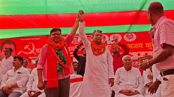 समस्तीपुर : विभूतिपुर विधानसभा क्षेत्र से महागठबंधन समर्थित सीपीआईएम प्रत्याशी कामरेड अजय कुमार एवं जनसुराज से विश्वनाथ चौधरी उर्फ तुफान जी ने 16 अक्टूबर गुरुवार को दलसिंहसराय में नामांकन पर्चा दाखिल किया है। इस नामांकन के मौके पर दोनों प्रत्याशी के अपने-अपने समर्थक भी मौजूद थे। समर्थकों में अपने-अपने प्रत्याशियों के नामांकन को लेकर भारी उत्साह देखने को मिल रहा था। नामांकन के मौके पर विधायक अजय कुमार के द्वारा एक सभा भी की गई। जिसकी अध्यक्षता आरजेडी प्रखंड अध्यक्ष रविन्द्र कुमार यादव ने किया। सभा को माकपा पोलित ब्यूरो सदस्य और राजस्थान सीकर के सांसद आमारा राम,पूर्व मंत्री सह उजियारपुर विधायक आलोक कुमार मेहता, कामरेड अजय कुमार सहित कई अन्य नेताओं ने संबोधित किया।