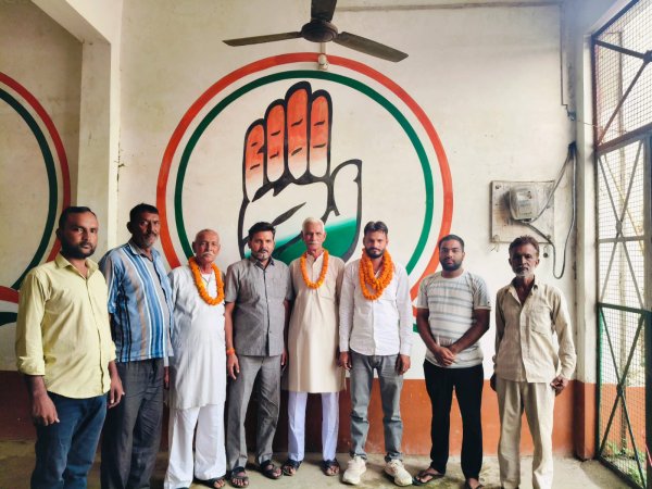 कांग्रेस पिछड़ा विभाग कासमपुर निवासी नवनियुक्त जिला अध्यक्ष विकेश कुमार चौधरी निवर्तमान जिला अध्यक्ष विजय शर्मा के निवास कैंप कार्यालय मोहम्मदपुर टांडा पहुंचे