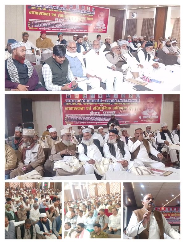 बैठक की शुरुआत हाफ़िज़ मोहम्मद असलम सुबहानी द्वारा पवित्र कुरान के पाठ से हुई, जिसके बाद पैगंबर इस्लाम की दशबारगाह में नात पेश की गई, राष्ट्रगान गाया गया। बैठक के विशेष अतिथि, बुनकर नेता और समाजवादी पार्टी की कार्यकारी समिति के राज्य सदस्य मोहम्मद इसहाक अंसारी ने अपने विशेष संबोधन में कहा कि स्वतंत्रता के बाद जब देश में भारतीय संविधान लागू हुआ, तो उस में खास तौर पर सभी पिछड़े और वंचित वर्गों की भलाई और उन्हें देश की मुख्यधारा में शामिल करने के लिए रिज़र्वेशन का अधिकार दिया। जब 1950 में देश में नया संविधान लागू हुआ, तो आर्टिकल 341 में उन सभी वर्गों को खास अधिकार दिए गए जो पेशे से दलित थे, लेकिन अगस्त 1950 में राष्ट्रपति के एक आदेश ने इसमें गैर-हिंदुओं पर रोक लगा दी और देश के संविधान को तोड़-मरोड़ दिया, जिसका बुरा असर आज तक महसूस किया जा रहा है और कई पीढ़ियां इससे प्रभावित होकर पिछड़ी हो गई हैं। मिस्टर अंसारी ने कहा कि बौद्ध और सिख नेताओं ने अपने अधिकार वापस पाने के लिए सरकार से टकराव किया और सरकार को झुकना पड़ा। सरकार ने उस कानून में बदलाव करके बौद्ध और सिख दलितों को यह अधिकार दिया, लेकिन देश की सबसे बड़ी माइनॉरिटी, मुसलमान और ईसाई, आज तक इससे वंचित हैं। मिस्टर अंसारी ने कहा कि जब भी राज्य सरकारों ने मुसलमानों का पिछड़ापन दूर करने के लिए कोई खास अधिकार देने की कोशिश की, तो कट्टर हिंदुओं ने धर्म के नाम पर उसे गैर-संवैधानिक करार दे दिया। उसके बाद, जो भी थोड़ा-बहुत मिला, तथाकथित स्वर्ण मुसलमानों ने पिछड़े मुसलमानों के हक हड़प लिए हैं। मिस्टर अंसारी ने कहा कि संविधान की भावना के मुताबिक, सभी भारतीयों को असल में बराबर हक मिलने चाहिए। उन्हें पढ़ाई, नौकरी और राजनीति में भी हक मिलना चाहिए। क्योंकि 341 पर धर्म की रोक से जो नुकसान दिख रहा है, उससे और भी पॉलिटिकल नुकसान हो रहा है। अगले उत्तर प्रदेश चुनाव 2027 में फिर होंगे। इसमें पिछड़े मुसलमानों को सिर्फ वोट बैंक के तौर पर इस्तेमाल करने का गंदा प्लान बनना शुरू हो गया है। उन्होंने कहा कि आपके बीच बड़े लोग आएंगे। वे जो सबसे खतरनाक हथकंडे अपनाएंगे, उनमें से एक है धार्मिक भावनाएं भड़काना और आपके सामने आने वाली जाति के आधार पर भेदभाव और सामाजिक-आर्थिक कमी की असली समस्याओं से ध्यान भटकाना। मिस्टर अंसारी ने कहा कि सच्चर कमेटी रिपोर्ट (2006) और रंगनाथ मिश्रा कमीशन रिपोर्ट (2007) ने पिछड़े मुसलमानों की सामाजिक-आर्थिक असमानता को सामने लाया है। इन रिपोर्टों से पता चलता है कि ऊंची जाति के मुसलमानों (रईसों) और हिंदुओं में पिछड़ा समुदाय दलितों और OBC जैसे दूसरे पिछड़े समुदायों की तुलना में बहुत पिछड़ा है। शिक्षा, रोज़गार और बुनियादी