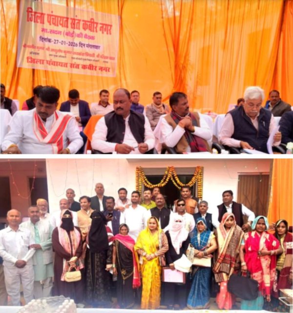 संतकबीरनगर : में जिला पंचायत कार्यालय पर अध्यक्ष बलिराम यादव की अध्यक्षता में बोर्ड की महत्वपूर्ण बैठक आयोजित की गई। बैठक में जिले के समग्र विकास को गति देने के उद्देश्य से वित्तीय 2026-27 के मूल बजट को सर्वसम्मति से स्वीकृति प्रदान की गई। अपर मुख्य अधिकारी आशुतोष कुमार ने सदन के समक्ष बजट प्रस्ताव प्रस्तुत किया। विस्तृत चर्चा के बाद वर्ष 2026-27 के लिए करोड़ों रुपये के मूल बजट को अनुमोदित किया गया। बैठक में सीडीओं जयकेश त्रिपाठी, सांसद लक्ष्मीकान्त निषाद तथा विधायक गणेश चन्द्र चौहान और अनिल कुमार त्रिपाठी के साथ ही जिला पंचायत सदस्यों ने बैठक में सहभागिता की