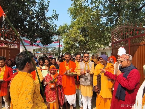 संतकबीरनगर : तहसील मेहदावल के अंतर्गत बूढ़ी बेलहर स्थित बाबा गरीबदास कुटी पर आयोजित श्री हनुमत महायज्ञ एवं कथा कार्यक्रम में इन दिनों श्रद्धालुओं की भारी भीड़ उमड़ रही है।कार्यक्रम के आयोजक श्री श्री 1008 बाबा बालकदास हैं, जबकि उद्घाटन जिला पंचायत प्रत्याशी वार्ड संख्या-8 आनंद कुमार पांडेय द्वारा कराया गया। यह धार्मिक आयोजन 22 फरवरी रविवार से प्रारम्भ होकर 28 फरवरी शनिवार तक चलेगा।बताया गया कि 22 फरवरी को भव्य कलश यात्रा के साथ महायज्ञ का शुभारम्भ हुआ था। तब से प्रतिदिन कथा, पूजन एवं धार्मिक अनुष्ठानों में क्षेत्र के श्रद्धालु बढ़-चढ़कर भाग ले रहे हैं और भक्तिमय वातावरण बना हुआ है।