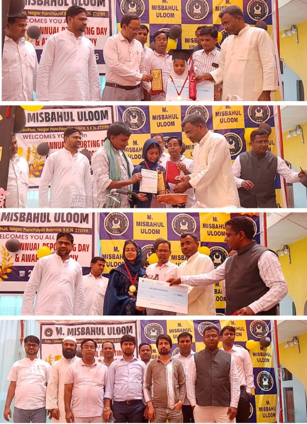 संतकबीरनगर : नगर पंचायत बखिरा के लेडुआ महुआ स्थित एम. मिस्बाहुल उलूम विद्यालय में वार्षिक परीक्षाफल एवं पुरस्कार वितरण समारोह का आयोजन बड़े उत्साह के साथ किया गया। इस अवसर पर विद्यार्थियों ने विभिन्न सांस्कृतिक कार्यक्रम प्रस्तुत कर उपस्थित लोगों का मन मोह लिया।