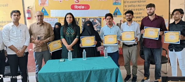 संत कबीर नगर - सहायक संभागीय परिवहन अधिकारी प्रियंवदा सिंह ने एहसास डे केयर सेंटर द्वारा संचालित जनजागरूकता अभियानों की सराहना करते हुए संस्था की टीम को प्रमाण पत्र देकर सम्मानित किया। एआरटीओ प्रियंवदा सिंह ने कहा कि संस्था ने सड़क सुरक्षा जागरूकता कार्यक्रमों के माध्यम से सड़क दुर्घटनाओं की रोकथाम और आमजन को यातायात नियमों के प्रति जागरूक करने में महत्वपूर्ण भूमिका निभाई है। इसके साथ ही संस्था ने नशा मुक्ति अभियान और मिशन शक्ति अभियान के अंतर्गत भी सराहनीय कार्य किया है। उन्होंने बताया कि एहसास डे केयर सेंटर की ओर से रैलियों और जागरूकता कार्यक्रमों के माध्यम से लोगों को यातायात नियमों के पालन,नशे से होने वाली दुर्घटनाओं की रोकथाम तथा महिलाओं की सुरक्षा के प्रति जागरूक किया गया। साथ ही संस्था ने भारत सरकार और राज्य सरकार की विभिन्न जनकल्याणकारी योजनाओं को आम जनता तक पहुंचाने में भी सक्रिय भागीदारी निभाई है। इस अवसर पर एआरटीओ ने संस्था के निदेशक आनंद कुमार त्रिपाठी को शुभकामनाएं देते हुए संस्था के प्रयासों की सराहना की और भविष्य में भी ऐसे कार्यक्रम जारी रखने की अपेक्षा जताई। इस अवसर पर उत्कृष्ट कार्य करने वाले रत्नेश कुमार त्रिपाठी,शाहनवाज,अमीरुद्दीन कादरी,तमन्ना खातून एवं दिलनवाज को सम्मानित किया गया।