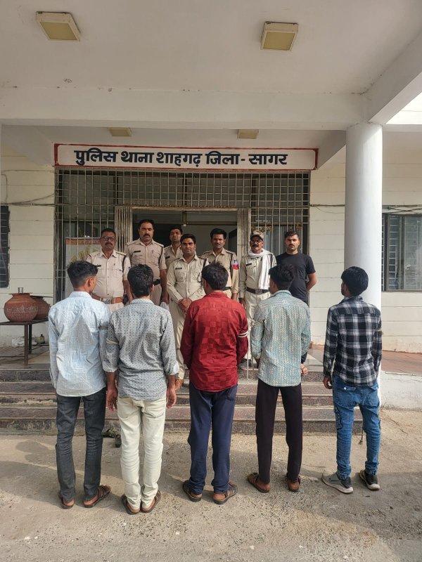 5 आरोपियों को गिरफ्तार कर शाहगढ पुलिस ने भेजा जेल आरोपियों ने राहगीर को रास्ते में रोककर की थी मारपीट