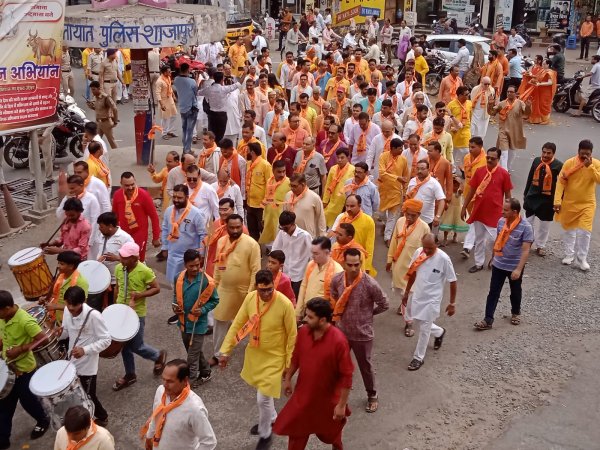 शाजापुर : सर्व ब्राह्मण समाज द्वारा रविवार को भगवान परशुराम जी की शोभायात्रा निकाली गई। जिसमें बड़ी संख्या में समाजजन शामिल रहे। यात्रा में सबसे आगे ब्राह्मण कन्याएं और मातृशक्ति रहीं। उनके पीछे समाज के युवा व वरिष्ठजन शोभायात्रा का मान बढ़ा रहे थे। शोभायात्रा एबी रोड स्थित मां राजराजेश्वरी मंदिर परिसर से प्रारंभ होकर एबी रोड ट्रैफिक पाइंट, टेंशन चौराहा, मगरिया, सोमवारिया, कंस चौराहा, बालवीर हनुमान मंदिर, वजीरपुरा, धानमंडी, किला रोड, छोटा चौक, बड़ा चौक, नईसड़क होकर मां राजराजेश्नरी मंदिर पहुंचकर संपन्न हुई। यहां पर भगवान श्री परशुराम की महाआरती के साथ ही अतिथियों का स्वागत और जन्मोत्सव समारोह में मुख्य भूमिका निभाने वाले समाजजन व युवाओं का सम्मान किया गया। साथ ही समाजजन का सहभोज भी हुआ