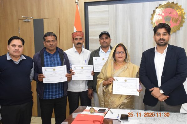 जिला निर्वाचन अधिकारी ने मतदान सूची का विशेष गहन पुनरीक्षण कार्य को सतप्रतिशत पूर्ण करने वाले 26 बी.एल.ओ को प्रशस्ति पत्र देकर किया सम्मानित