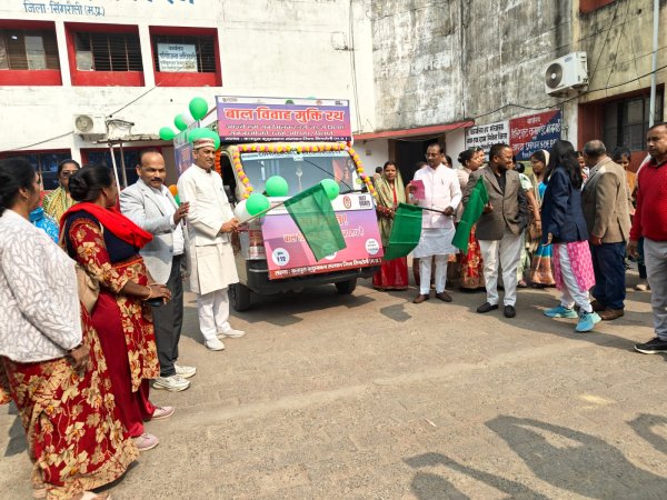 बाल विवाह मुक्त भारत अभियान प्रचार रथ विधायक सिंगरौली ने हरि झण्डी दिखाकर किया रवाना