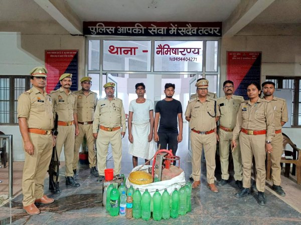 सीतापुर : पुलिस अधीक्षक सीतापुर अंकुर अग्रवाल द्वारा अवैध शराब निष्कर्षण, बिक्री एवम् परिवहन की रोकथाम हेतु ऐसे आपराधिक कृत्यों में लिप्त अपराधियों के विरूद्ध प्रभावी कार्यवाही हेतु निर्देश दिये गये हैं । दिये गये निर्देशों के अनुपालन के क्रम में क्षेत्राधिकारी मिश्रिख श्री दीपक कुमार सिंह के निकट पर्यवेक्षण में थाना नैमिषारण्य एवम् आबकारी विभाग की संयुक्त पुलिस टीम द्वारा 02 अभियुक्तों 1. छत्रपाल पुत्र रामबक्श 2. लवकुश पुत्र छत्रपाल निवासीगण ग्राम पियना मजरा पनाहनगर थाना नैमिषारण्य सीतापुर को ग्राम पियना से अवैध शराब का निर्माण करते हुए गिरफ्तार किया है। मौके से एक अदद गैस चूल्हा 02 बर्नर, एक अदद घरेलू गैस सिलेण्डर, एक अदद रेगुलेटर मय पाइप, एक अदद लाइटर, दो अदद टीन के डिब्बे मय निष्कर्षण पाइप लाल रंग मय 18 अदद कोल्ड ड्रिंक की सवा दो ली० की प्लास्टिक की बोतल में करीब 36 लीटर तथा 70 अदद 100 ML की सफेद पारदर्शी पन्नी में करीब 07 लीटर कुल 43 लीटर अवैध कच्ची शराब 01 अदद प्लास्टिक पीले रंग की 20 लीटर की बाल्टी, एक अदद मग्गा बरामद हुआ है। कार्यवाही के संबंध में थाना नैमिषारण्य पर मु0अ0सं0 66/25 धारा 60(2) आबकारी अधिनियम पंजीकृत कर अभियुक्तों का चालान माननीय न्यायालय किया जा रहा है। अभियुक्तों द्वारा अवैध कृत्यों से अर्जित सम्पत्ति का पता लगाकर नियमानुसार निरोधात्मक कार्यवाही भी की जायेगी।