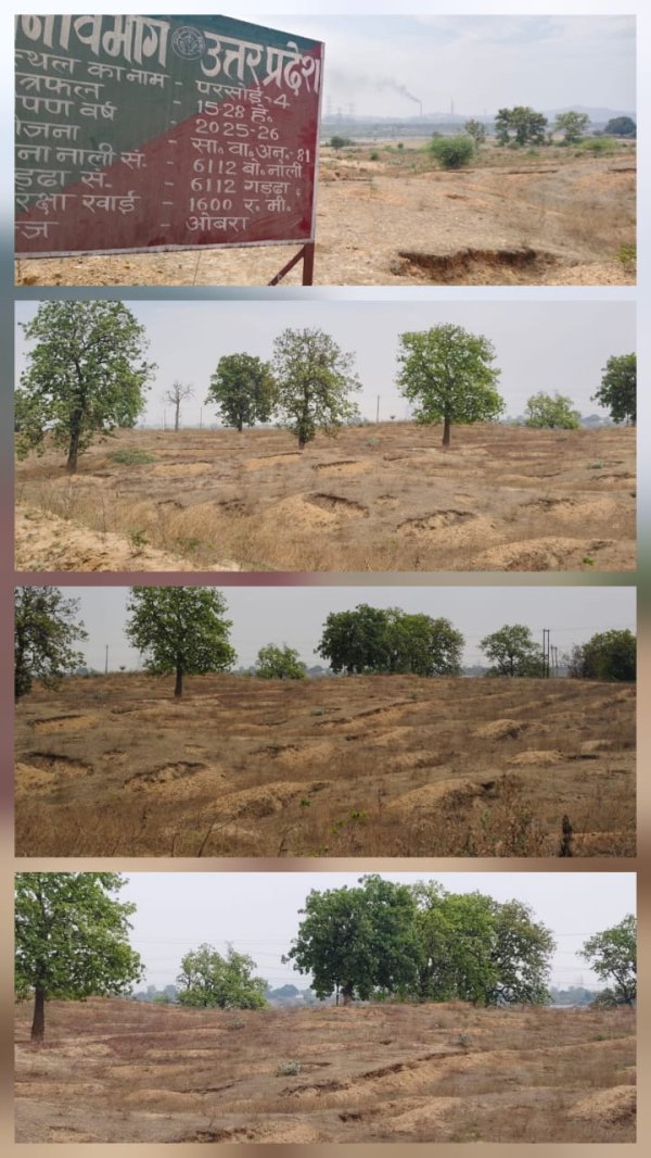 ओबरा/सोनभद्र : प्रदेश में हरियाली बढ़ाने के बड़े-बड़े दावों के बीच सोनभद्र के ओबरा क्षेत्र से एक चौंकाने वाली तस्वीर सामने आई है। रेणुका नदी के तट पर पारसोई-4 वृक्षारोपण स्थल पर लाखों रुपये खर्च होने के बावजूद जमीनी हकीकत सरकारी दावों से बिल्कुल उलट नजर आ रही है। यहां वृक्षारोपण के नाम पर भारी अनियमितताओं और भ्रष्टाचार के आरोप सामने आए हैं।