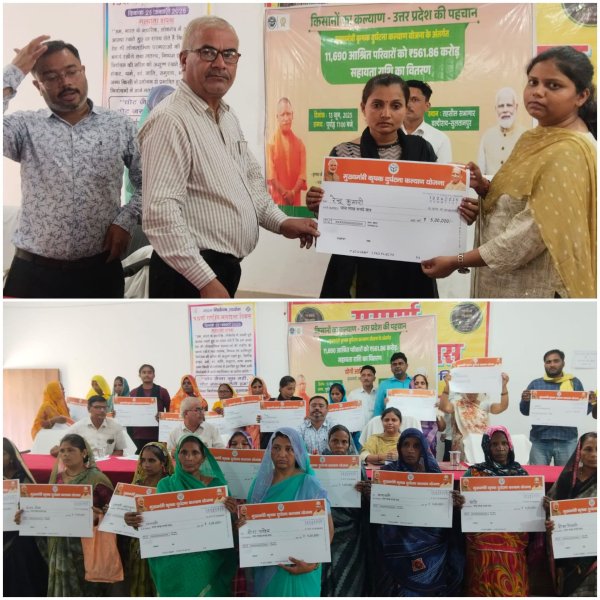 सोमवार को बल्दीराय तहसील सभागार में मुख्यमंत्री कृषक दुर्घटना कल्याण योजना के अंतर्गत आयोजित कार्यक्रम में 31 लाभार्थियों को 1 करोड़ 55 लाख रुपये का प्रतीकात्मक चेक वितरित किया गया