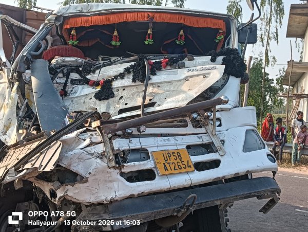 हलियापुर में भीषण सड़क हादसा-एक मजदूर की मौत,तीन घायल
