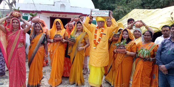 पीले वस्त्र धारण किए महिलाएं सिर पर कलश रखकर मंगल गीत गाती हुई चल रही थीं। श्रद्धालुओं की सहभागिता से निकली यह शोभायात्रा पूरे गांव में आकर्षण का केंद्र बनी रही और जगह-जगह लोगों ने श्रद्धा भाव से स्वागत किया।