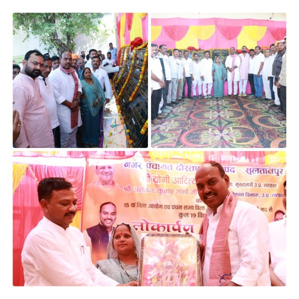 सुल्तानपुर : मा० मुख्यमंत्री योगी आदित्यनाथ एवं मा० नगर विकास मंत्री अरविंद कुमार शर्मा की प्रेरणा से नगर पंचायत दोस्तपुर में विकास कार्यों के लोकार्पण का भव्य कार्यक्रम आयोजित किया गया। इस अवसर पर कादीपुर विधायक राजेश गौतम के नेतृत्व में कुल 19 विकास कार्यों का विधिवत फीता काटकर लोकार्पण किया गया।