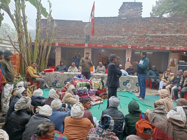 टूंडला - साल के अंत समय में जरूरतमंद लोगों को उनकी जरूरत के हिसाब से वेलफेयर सोसाइटी बछगांव द्वारा महादेव मंदिर पर कंबल,स्वेटर,और शाल का वितरण किया गया जिसमें लगभग 300 से ऊपर जरूरत मंद लोगों की सर्दी से बचने के लिए मदद की इसमें समाजसेवी सौरभ गोस्वामी ने बताया ने बताया कि मन में विचार आया कि हम जैसे भाई बहन बुजुर्ग बच्चे ऐसे बहुत लोग है जिनको सर्दी से बचने के उनके पास साधन की कमी है उनकी कमी में थोड़ा सा हाथ बढ़ाया जाए तो ये काम किया जिससे बछगांव के ग्रामीणों ने कंबल स्वेटर शॉल पाकर उनके चेहरे पर खुशी देखने को मिली और इसी खुशी को लाने के लिए हम और आप मदद करें वहीं समाज सेवी श्री कृष्ण गौतम जी ने बताया कि इस प्रकार के कार्य होने से किसी को कभी भी व्यक्ति को गरीबी का अहसास नहीं होगा हम सब मिलकर जिसको जरूरत है उनकी मदद करें हमारा धर्म भी यही कहता है कि एक दूसरे की मदद की जाए तो भगवान भी आपको आगे बढ़ाता है गांव में सभी लोगों ने मिलकर सहयोग किया
