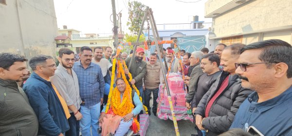 रुद्रपुर : नगर निगम के नवनिर्वाचित महापौर विकास शर्मा का वार्ड नंबर 32, फौजी मतकोटा में संजीव सिरोही राजेंद्र कालरा , पार्षद प्रत्याशी देवेंद्र सिंह बमल एवं समस्त वार्ड वासियों एवं कॉलोनी के लोगों द्वारा लड्डुओं से तोलकर भव्य स्वागत अभिनंदन किया गया। जिसमें वार्ड के सम्मानित नागरिकों, महिलाओं, गणमान्य व्यक्तियो कॉलोनी के लोगों देवतुल्य कार्यकर्ताओं ने बढ़-चढ़कर भाग लिया। महापौर विकास शर्मा ने सभी सम्मानित कॉलोनी ( वार्ड वासियों ) के लोगों का आभार व्यक्त करते हुए उनके समर्थन और विश्वास के लिए धन्यवाद दिया। इसके साथ ही, उन्होंने वार्ड में चल रहे अधूरे कार्यों की समीक्षा की और नागरिकों से सीधा संवाद कर उनकी समस्याओं को सुना। उन्होंने आश्वासन दिया कि वार्ड में लंबित विकास कार्यों को शीघ्रता से पूरा किया जाएगा, जिससे क्षेत्र के नागरिकों को बेहतर सुविधाएं प्राप्त होंगी। इस अवसर पर पार्षद प्रत्याशी देवेंद्र सिंह बमल संजीव सिरोही राजेंद्र कालरा श्याम सिंह चौहान रघुराज सिंह रावत कुमार पाल सिंह राकेश मलिक देवेंद्र बिष्ट विजेंद्र सिंह विनोद राठी वीर प्रताप सिंह प्रमोद चौहान दीपक बना विनोद राठी हरेंद्र सिंह अखिलेश सिंह पंडित त्रिलोचन पनेरु ओम मंडल कृपाल सहाय दिव्यांशु बामल जगमोहन सिंह विनोद कुमार परशुराम जी संदीप कुमार ओमपाल सिंह विपिन चौधरी अनुप मुकेश शेखर राठी इंद्रपाल सिंह चौधरी हरबंस सिंह जी गुड़िया मंजू कैथल पुष्पा अनीता वंदना सरिता सीमा ओमवती बिना सनम तोमर शशि बाला साधना विनीता प्रकाश देवी कृष्णा देवी महेंद्र देवी चंद्रावती बबीता सरोज देवी रेखा अनीता विमला शर्मा रेखा आदि समस्त वरिष्ठ नागरिक और युवा वर्ग की भी उपस्थिति रही, जिन्होंने महापौर से विभिन्न आवश्यकताओं और विकास कार्यों को प्राथमिकता देने का अनुरोध किया। महापौर विकास शर्मा ने कहा कि वे अपने कार्यकाल में नागरिकों की उम्मीदों पर खरा उतरने और शहर के सर्वांगीण विकास के लिए निरंतर प्रयासरत रहेंगे।"आपका समर्थन ही हमारी प्रेरणा है, और आपके विश्वास को बनाए रखना हमारी प्राथमिकता!