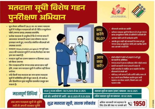 बिहार में एसआईआर लागू होने के बाद अब उत्तर प्रदेश में भी एसआईआर लागू करने के निर्देश । साल 2027 में उत्तर प्रदेश का विधानसभा चुनाव होना है, ऐसे में सभी राजनीतिक दलों को निर्देश दिया गया है कि वे जल्द ही बूथ लेवल एजेंट की नियुक्ति करें , और विशेष गहन पुनरीक्षण की प्रक्रिया का काम जल्द ही पूरा करें।