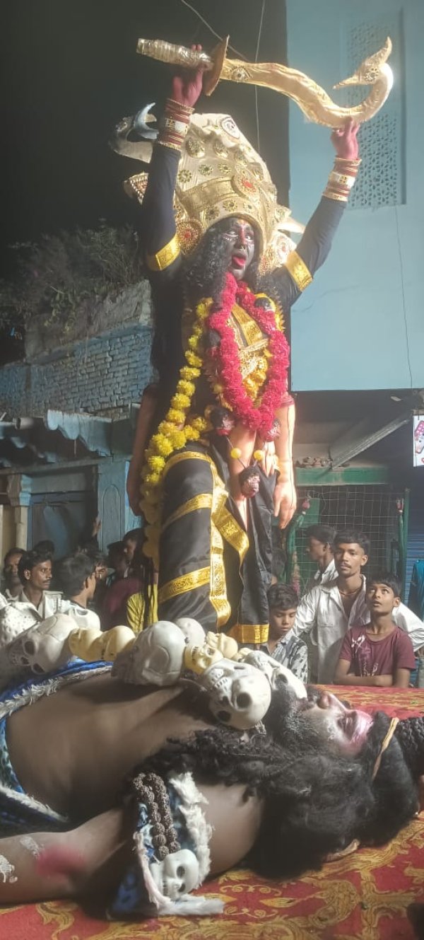 बस स्टैंड क्षेत्र की झांकियों में कलाकारों ने शिव नृत्य सहित कई धार्मिक प्रस्तुतियां दीं, वहीं महानीम चौराहा समिति द्वारा माता काली की भव्य झांकी और नृत्य प्रस्तुति दर्शकों का केंद्र बनी रही।