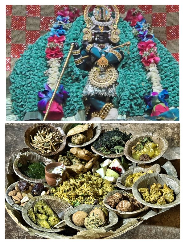 साथ ही, भोग की थाली में अचार, मुरब्बा, पापड़, पालक-मेथी भुजिया, विविध प्रकार के लड्डू और पकौड़े भी अर्पित किए गए। सभी व्यंजन सम्पूर्ण समर्पण और स्नेह की भावना से सजाए गए।