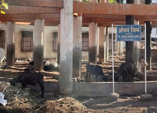 हवेली : लोहेगांव में बना एक ओपन जिम गलत कारणों से चर्चा में है। स्थानीय लोगों का कहना है कि यह जगह, जो सार्वजनिक फिटनेस के लिए बनाई गई थी, वहां बहुत कम जिम मशीनें हैं और अब इसका इस्तेमाल ज्यादातर गायों और भैंसों द्वारा आराम करने के लिए किया जा रहा है।