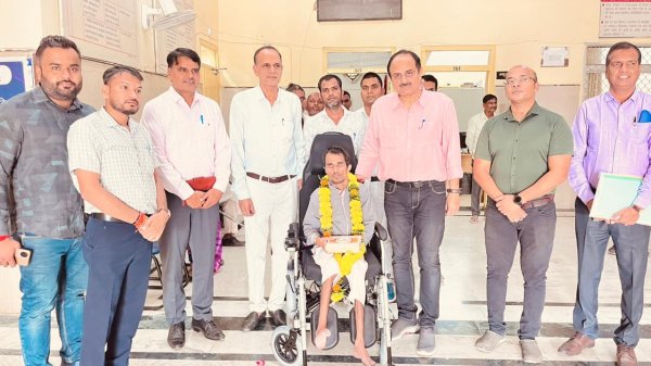 दिव्यांग करण सिंह को जिला कलेक्टर ने प्रदान की इलेक्ट्रिक पावर व्हील चेयर