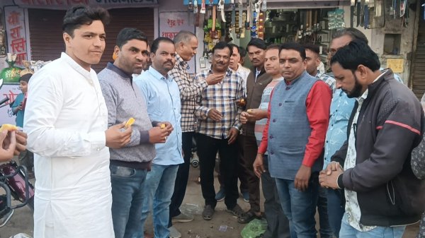 अंता उपचुनाव मे प्रमोद जैन भाया के जीतने पर कांग्रेसियों ने मिठाइयां बाटकर जश्न मनाया