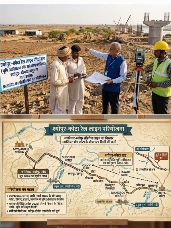 श्योपुर–कोटा रेल लाइन परियोजना इस समय भूमि अधिग्रहण और सर्वे के अहम चरण में