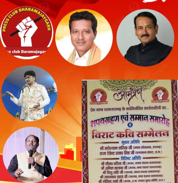 धरमजयगढ़ के पदाधिकारियों का शपथ ग्रहण समारोह एवं कवि सम्मेलन.मुख्य अतिथि होंगे...