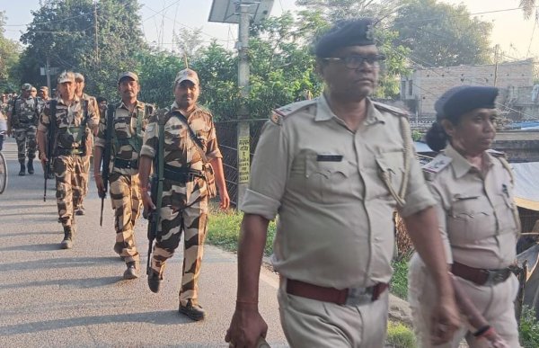 समस्तीपुर : आगामी बिहार विधानसभा चुनाव को शांतिपूर्ण माहौल में कराने को लेकर अंगार घाट थाना क्षेत्र में प्रशासन पूरी तरह अलर्ट मुड में आ गई है, थानाध्यक्ष हिमांशु कुमार के नेतृत्व में गुरुवार को पुलिसकर्मी व अर्धसैनिक बलों ने थाना क्षेत्र के विभिन्न इलाकों में फ्लैग मार्च किया,फ्लैग मार्च अंगार घाट, डढ़िया मुरियारो,हरपुर रेवाड़ी, बिरनामा,चैता दक्षिणी व चैता उतरी,सहित थाना क्षेत्र के गांवों में निकाला गया,फ्लैग मार्च के दौरान थानाध्यक्ष हिमांशु कुमार ने लोगों से निडर, निर्भीक और भयमुक्त होकर मतदान करने की अपील किया,साथ ही उन्होंने ने कहा कि अगर कोई व्यक्ति धमकी देता है या वोट खरीदने का प्रयास करता है तो उसकी सूचना तुरंत स्थानीय प्रशासन को दें, शांति और सुरक्षा व्यवस्था बनाये रखने के लिए पुलिस और सीआरपीएफ जवान लगातार क्षेत्र में गश्त कर रहे हैं।