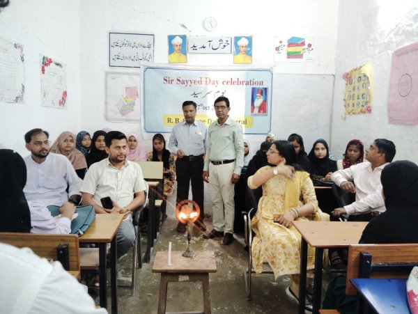समस्तीपुर : आर बी कॉलेज दलसिंहसराय के उर्दू विभाग द्वारा सर सैयद अहमद ख़ां की जयंती के अवसर पर महाविद्यालय के प्रधानाचार्य डॉक्टर वीरेंद्र कुमार चौधरी की अध्यक्षता में एक क्विज प्रतियोगिता का आयोजन किया गया। कार्यक्रम की विधि व शुरुआत दीप प्रजनन के साथ हुई। इस प्रतियोगिता में उर्दू विभाग के छात्र-छात्राओं ने सक्रिय भूमिका निभाई। इस प्रतियोगिता के सफल संचालन हेतु छात्रों को चार ग्रुप ए.बी.सी. और डी. में बांटा गया। यह प्रतियोगिता सर सैयद अहमद खां के व्यक्तित्व एवं कृतित्व पर केंद्रित था। इस प्रतियोगिता में ग्रुप बी ने प्रथम स्थान प्राप्त किया जिसमें आइसा प्रवीण, शाहीन फिरदौस, सादिया कसफ और अंशु कुमारी शामिल थे ।द्वितीय स्थान पर ग्रुप ए रहा जिसमें आइसा खातून, रुखसाना नफीस, मोहम्मद वसीम अकरम एवं मोहम्मद तबरेज शामिल थे। ग्रुप डी ने तृतीय स्थान प्राप्त किया जिसमें गुलफशा परवीन, गुलशन प्रवीण, नजराना प्रवीण एवं समा प्रवीण शामिल थे। सफल प्रतिभागियों हेतु उर्दू विभाग के विभागाध्यक्ष डॉक्टर सबा मामून रहमानी ने सम्मन पत्र और मेडल की व्यवस्था की। इस अवसर पर उर्दू विभाग के प्राध्यापक डॉ महताब आलम खान ने कार्यक्रम की विधिवत शुरुआत करते हुए सर सैयद अहमद खान के व्यापक संदेश को छात्रों के सामने प्रस्तुत करते हुए इस कार्यक्रम की रेखा से छात्रों को अवगत कराया। अपने अध्यक्षीय संबोधन में प्रधानाचार्य डॉक्टर चौधरी ने छात्रों को संबोधित करते हुए कहा कि सर सैयद अहमद खान हमारे देश के बहुत बड़े मनीषी एवं व्यक्तित्व थे। उनके जन्मदिन पर इस तरह की प्रतियोगिता आयोजित कर उर्दू भाग ने वाकई काबिले तारीफ काम किया है। मैं आशा करता हूं कि इस प्रतियोगिता से छात्र लाभ उठाएंगे एवं भविष्य के लिए अपना मार्ग प्रशस्त करेंगे। मौके पर हिंदी विभागाध्यक्ष डॉ सुनील कुमार सिंह, डॉ मुकेश कुमार झा, डॉक्टर कुतुबुद्दीन अंसारी एवं अंग्रेजी विभाग से शिवानी प्रकाश उपस्थित थे